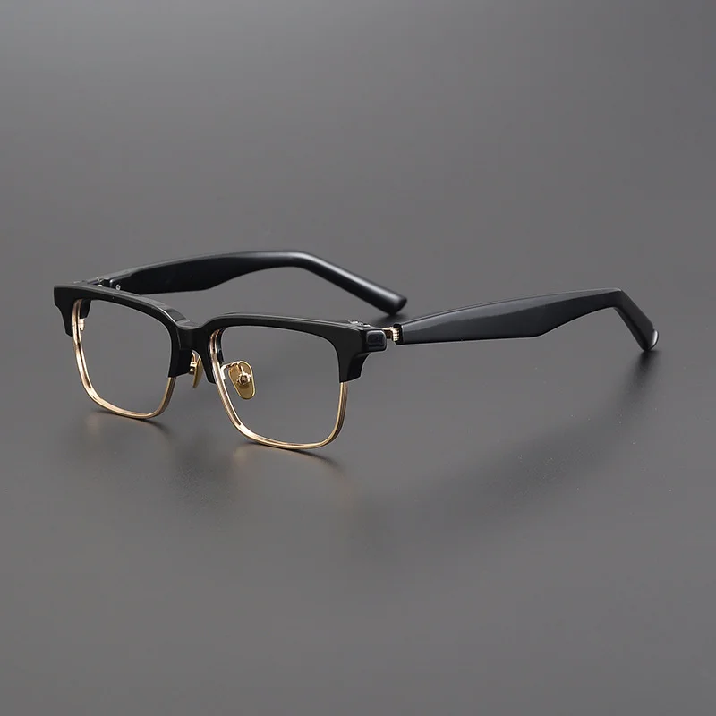Japanese Acetate Handmade Eyeglasses with Spring Hinge Designer Classical Square Men Glasses